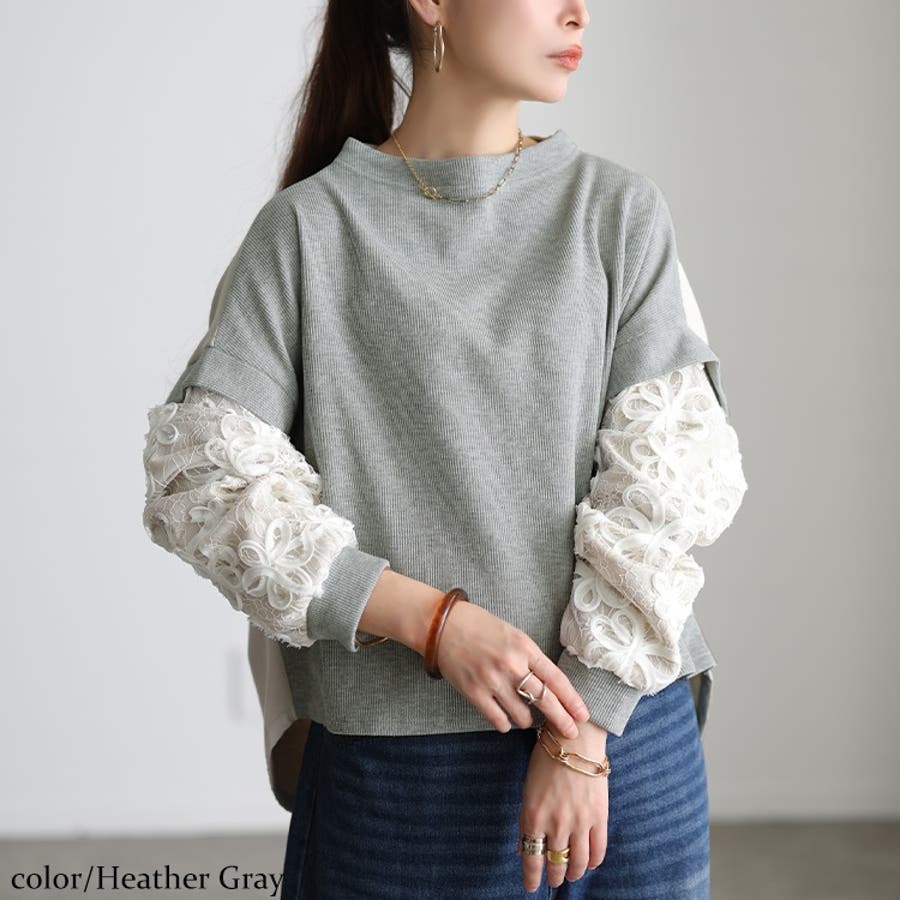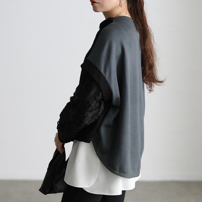 4種類の生地を贅沢に使用した、異素材ドッキングプルオーバー。まるでレイヤードしたようなスリーブデザインに、配色の色遊びがモード感と、トレンド風な洒落感を高めます。ボトルネックでカジュアルながらも、きちんと感が漂い、綺麗めなボトムスとも相性抜群。