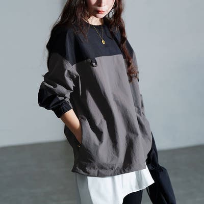 撥水裾ドロストバイカラープルオーバー