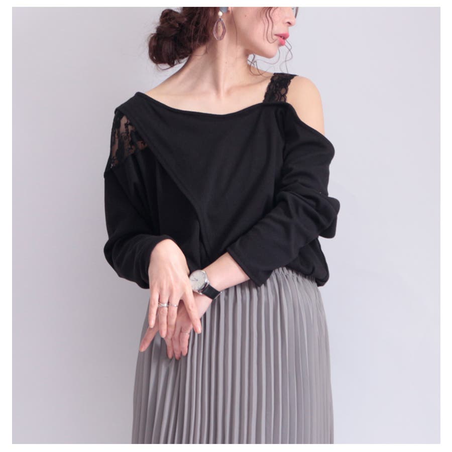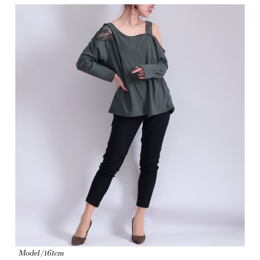 インナーに重ね着しているように見えるワンショルダー部分と右肩はレースを使っていてエレガント☆