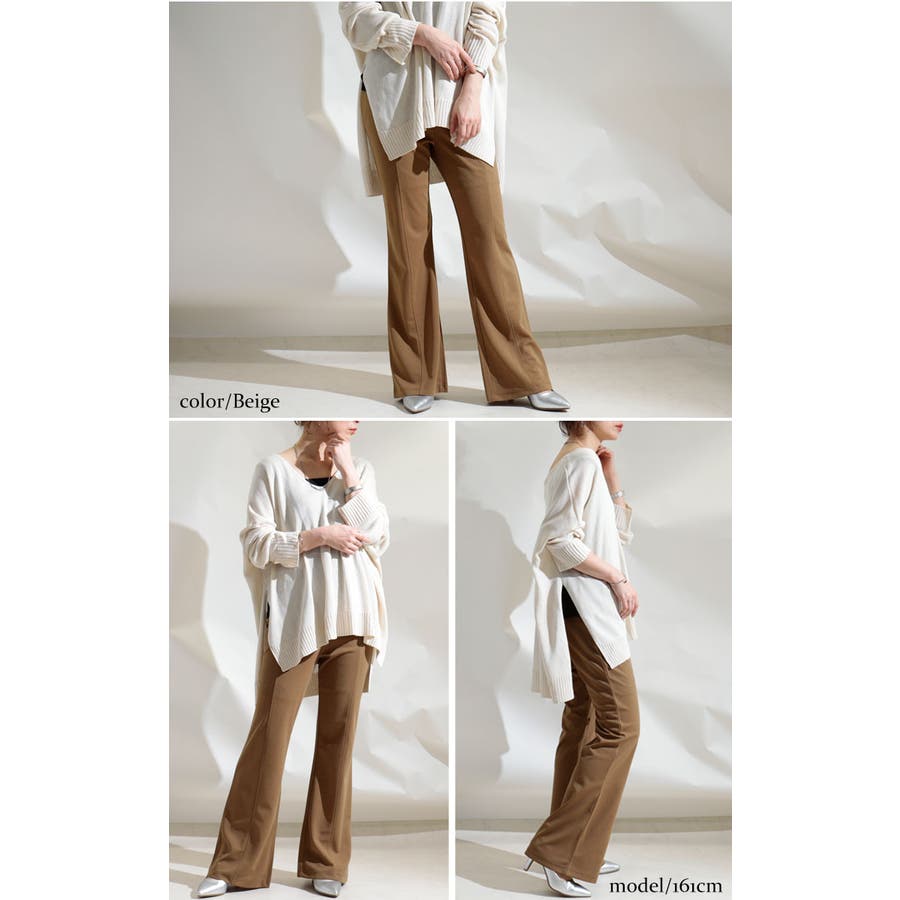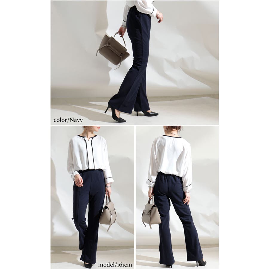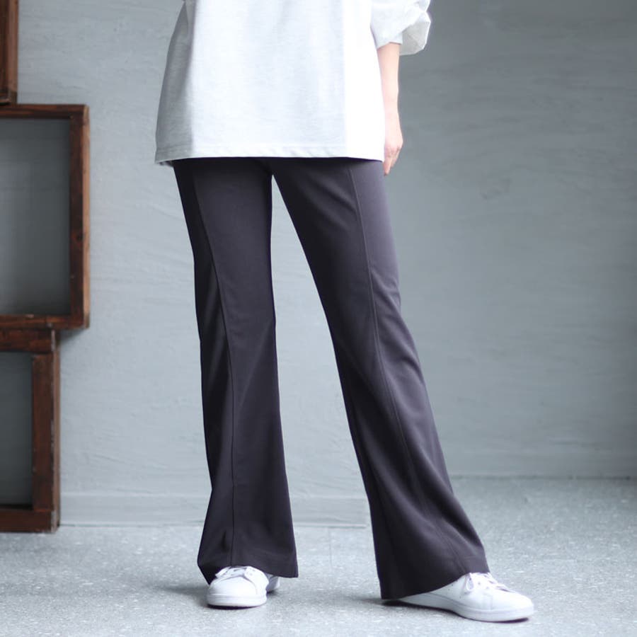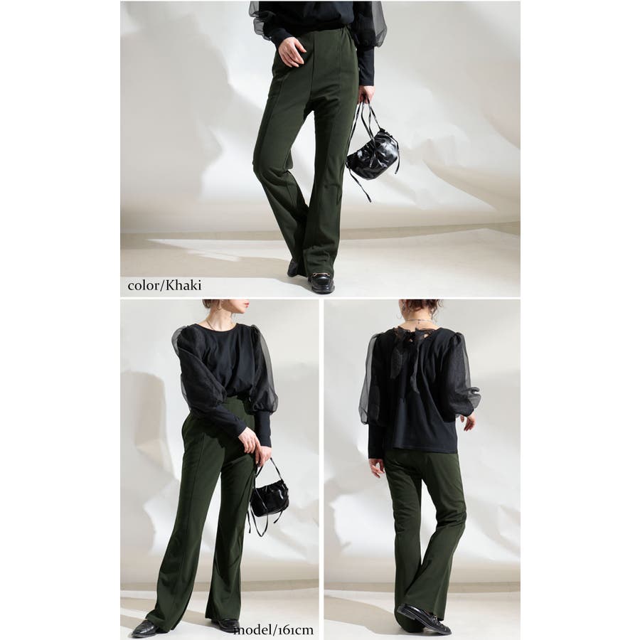 穿くだけで脚長美脚できちゃうひざ位置高め3cm脚長ストレッチフレアパンツです。
