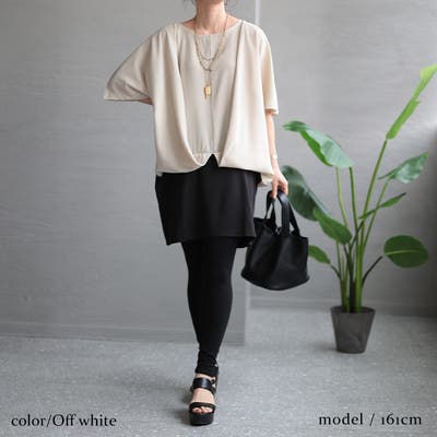 真ん中のドレープがアクセントになりストンとした落ち感のモードテイスト漂うチュニックワンピース。