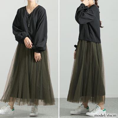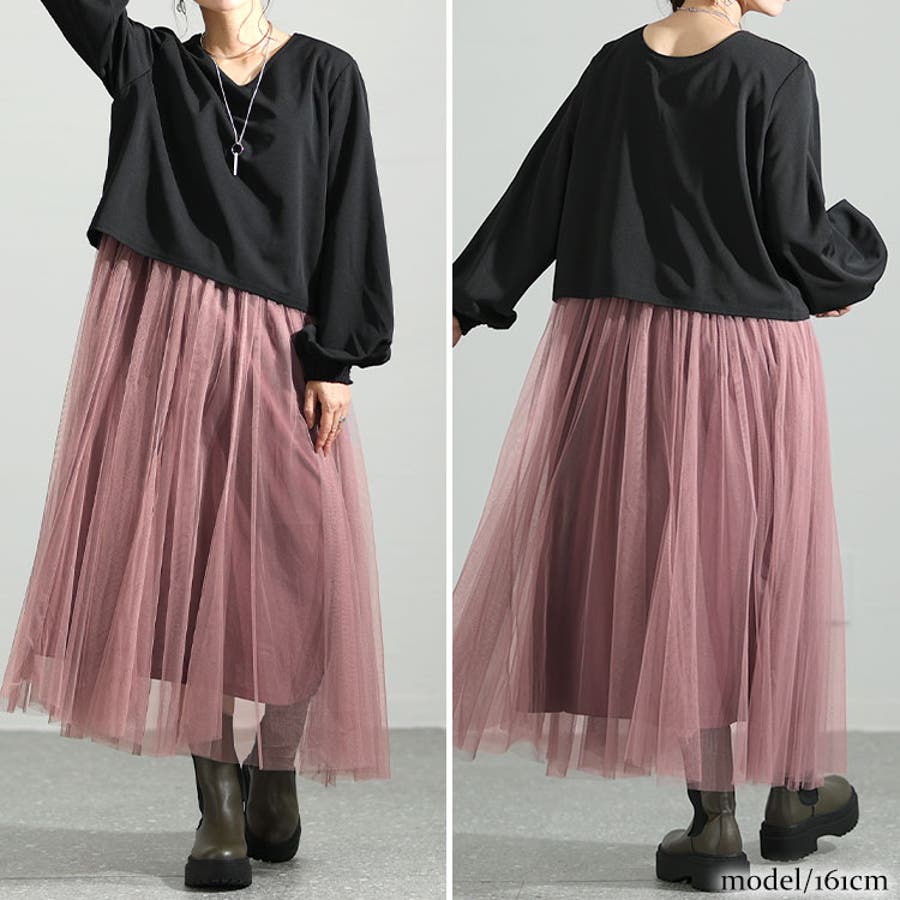 たっぷりの伸縮性のあるトップス&スカート裏地なので、ゆったりと着れるのもポイント☆