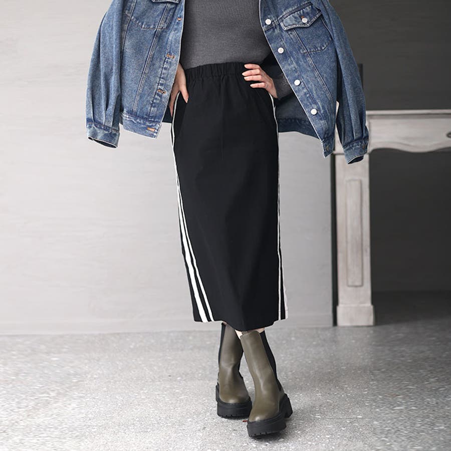 ストレッチツイルサイドライン入りナロースカート