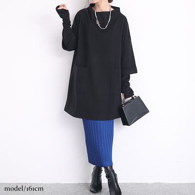 長袖カットソーと、チュニック丈のニットソーを重ね着したようなレイヤードデザインがおしゃれ!