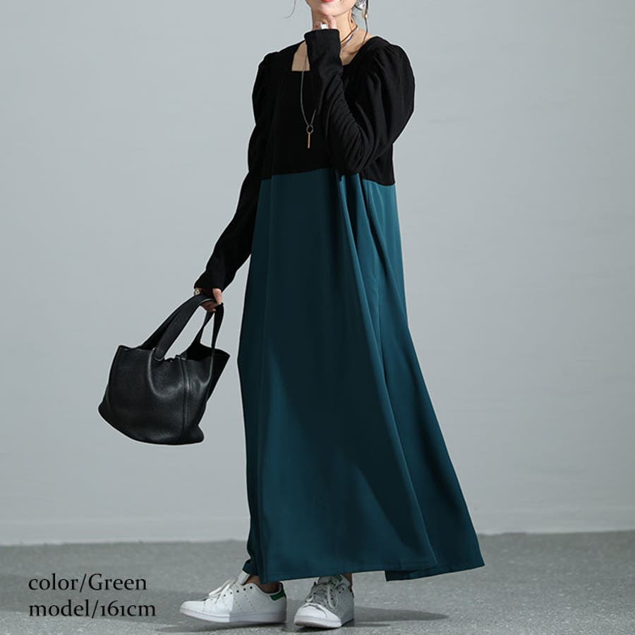 異素材を組み合わせた配色デザインのワンピースの登場です。
