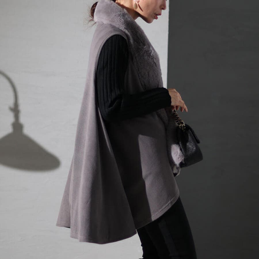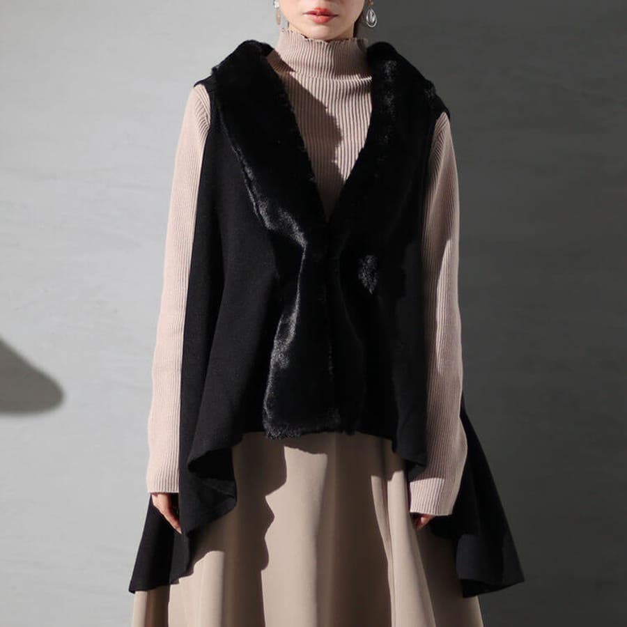 ボリュームのあるファーが印象的なニットジレの登場です。
