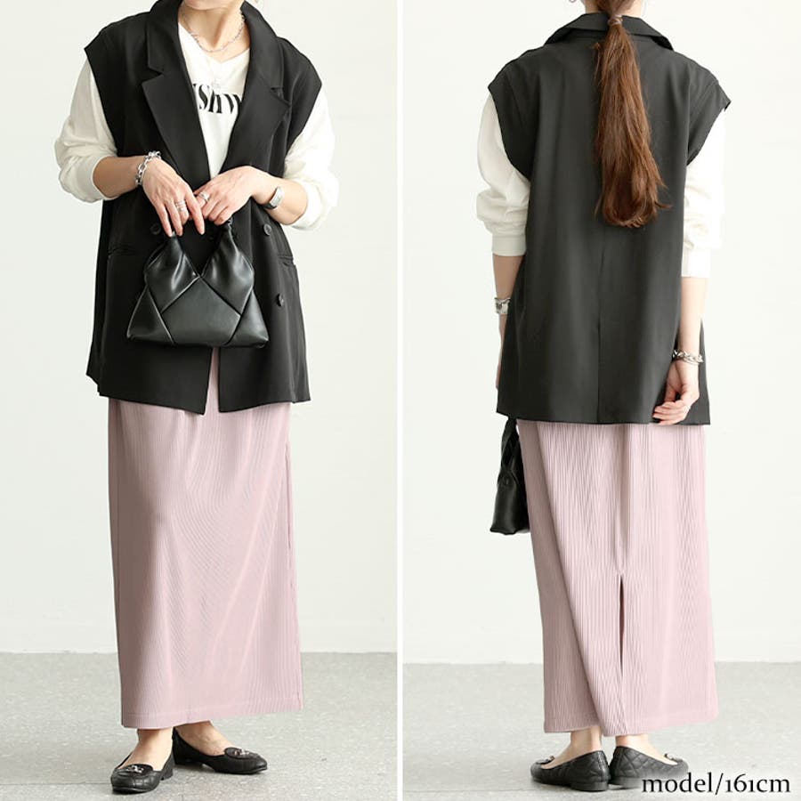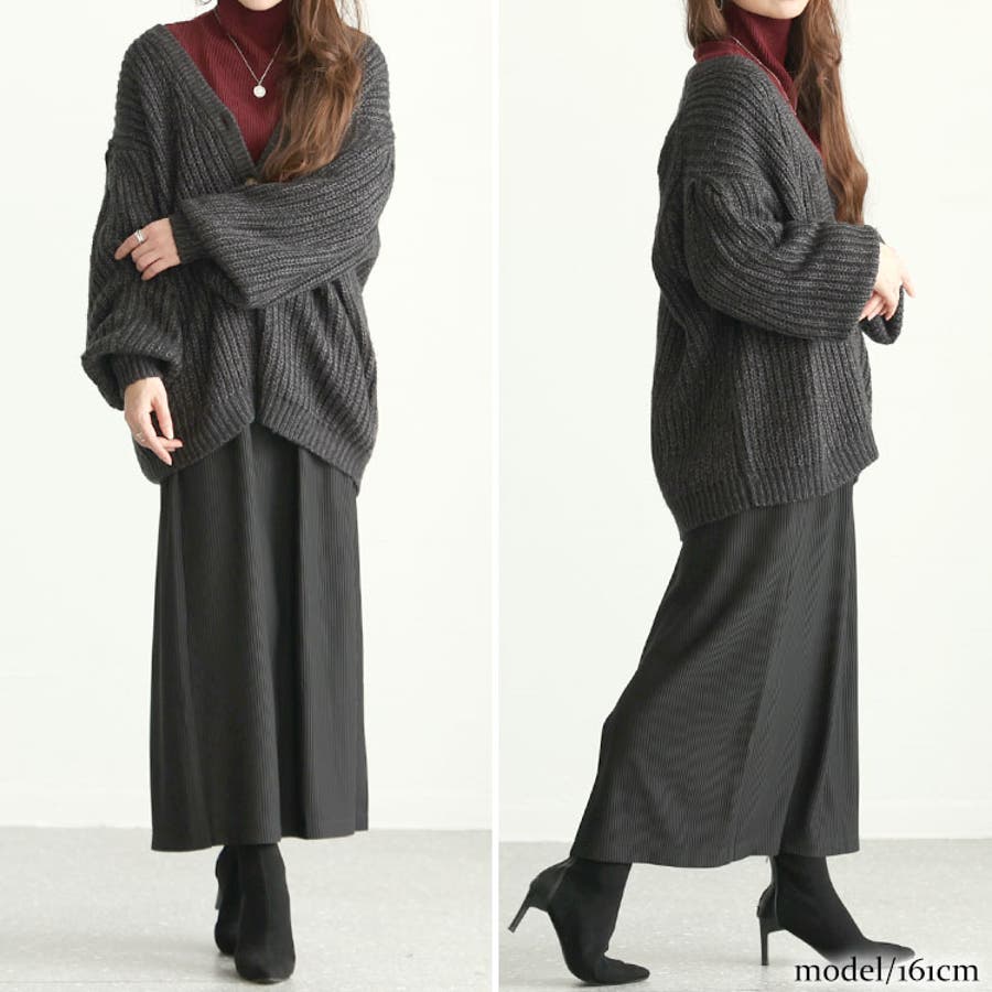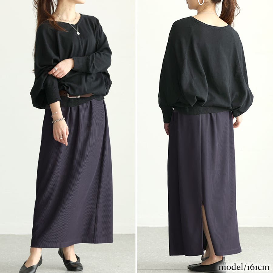 しっかりした縦リブのスカートはすらりとIラインを強調。