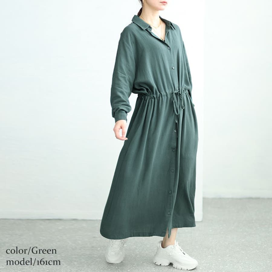 身幅に余裕をもたせたデザインでウエストをリボンで調整することで縦長感とくびれを強調してくれます。