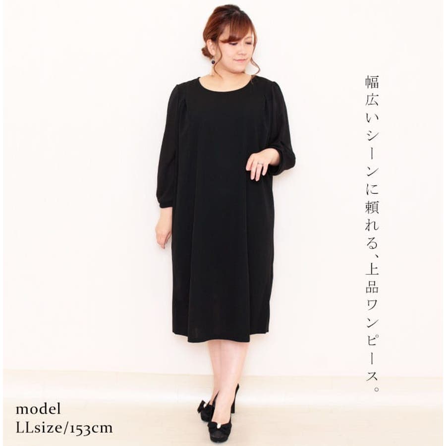 薄手素材なので、長い期間着まわしがきき、膝丈のストンとしたシルエットで、ボディラインが響きにくく着痩せ効果も◎