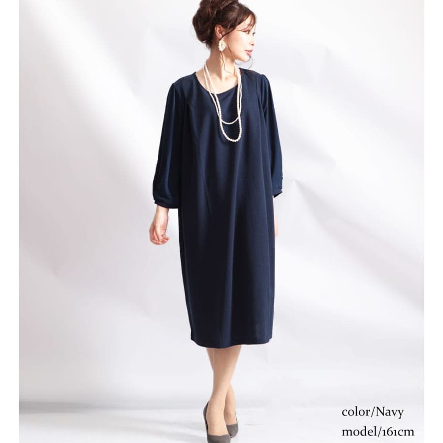 程よくゆとりのあるお袖はサラっとした着心地の涼し気な風合いです。さりげない袖と身頃の切替えがお洒落。きちんと感のあるワンピースです。