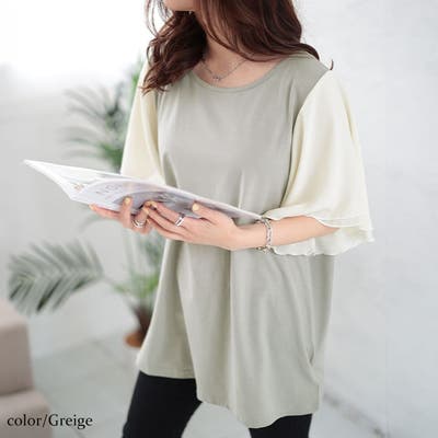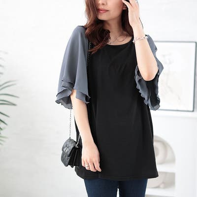 接触冷感フレアスリーブ切り替えカットソー