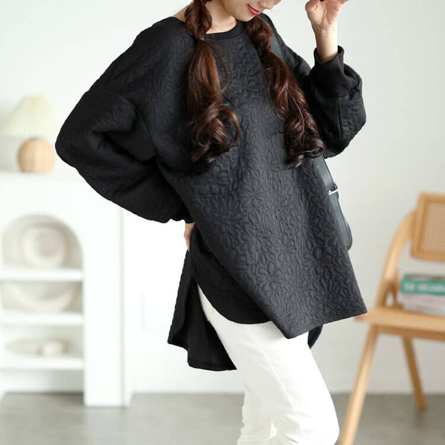花柄ふくれジャガードドルマンプルオーバー