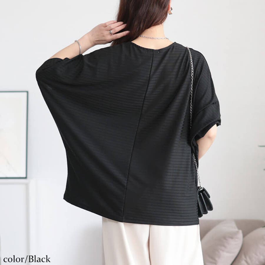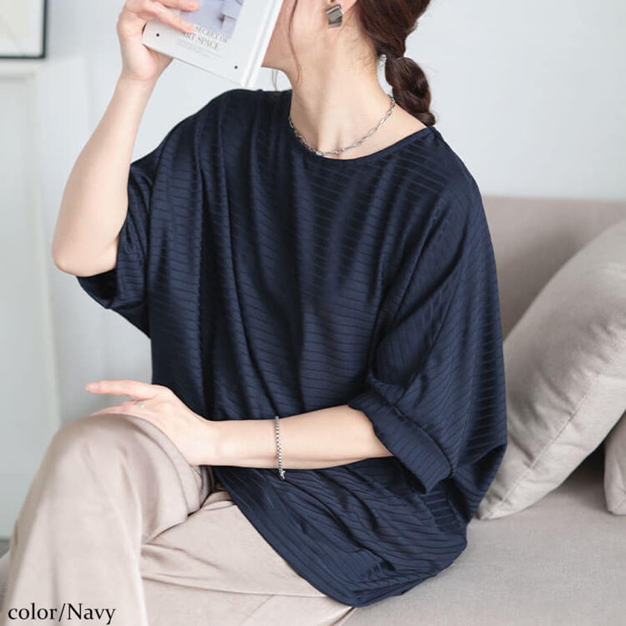 ぽっちゃりさんが敬遠しがちなボーダーも同色&こだわりドルマンシルエットで大きく見えない!