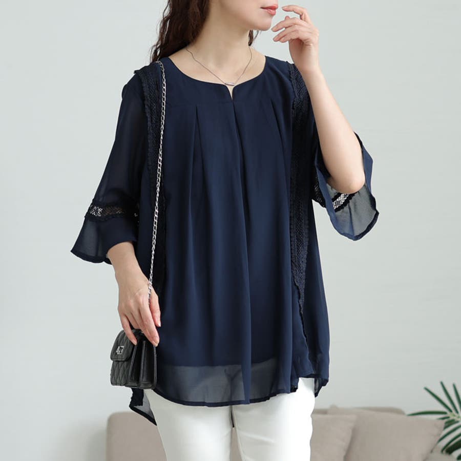 大きいサイズレディース チュニック バックプリーツタックシフォンチュニック