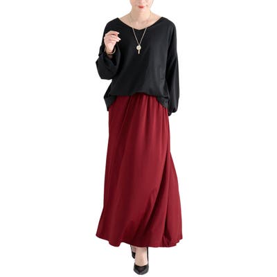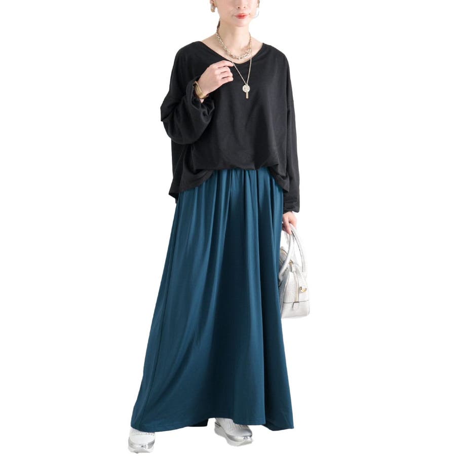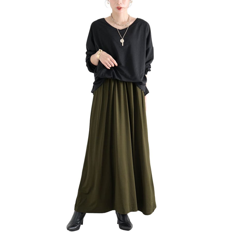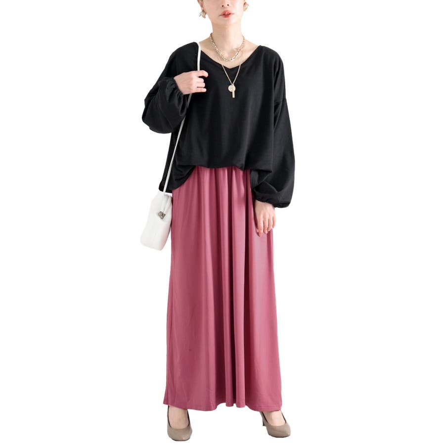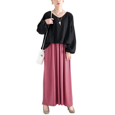 ボリューム袖で二の腕もカバーし、スカート部分は落ち感のあるテロンとした生地で程よいボリュームで体型を拾いません☆