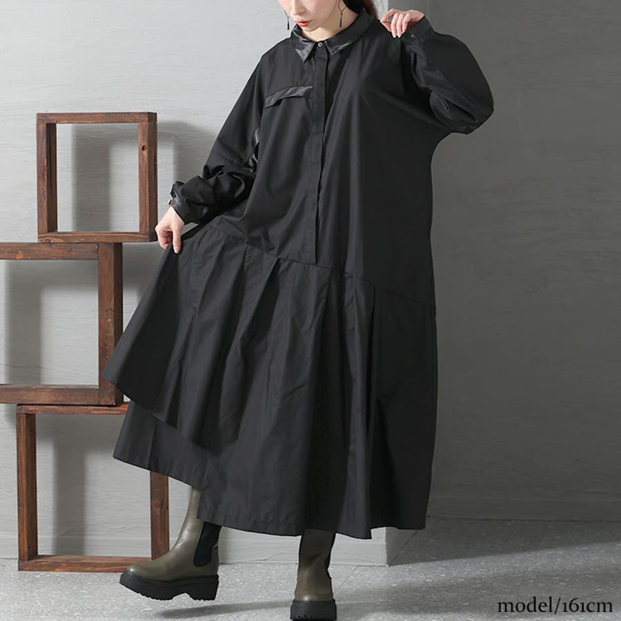 異素材アシメシャツワンピース