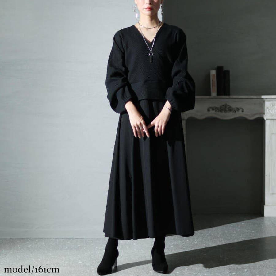 トップス部分は大人の落ち着きオーラを放つカシュクールデザインで程よい開きが首回りをスッキリと魅せてくれます。