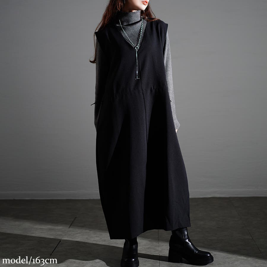 着痩せが狙える細見えジャンパースカート。