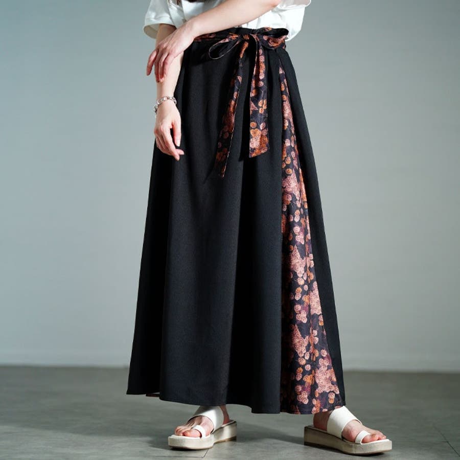 大人の女性らしさ高める、サイド花柄ロングスカート。