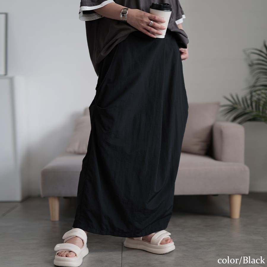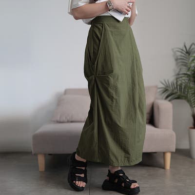 大胆なフロントタックデザインが、キリッときちんと感を演出しながらも、スポーティーライクなテクスチャーでカジュアルさが漂い、両サイドのタックが変形シルエットを描くことでモード感も演出する拘りの一枚。コーデに取り入れるだけでこなれ感漂うスカート。