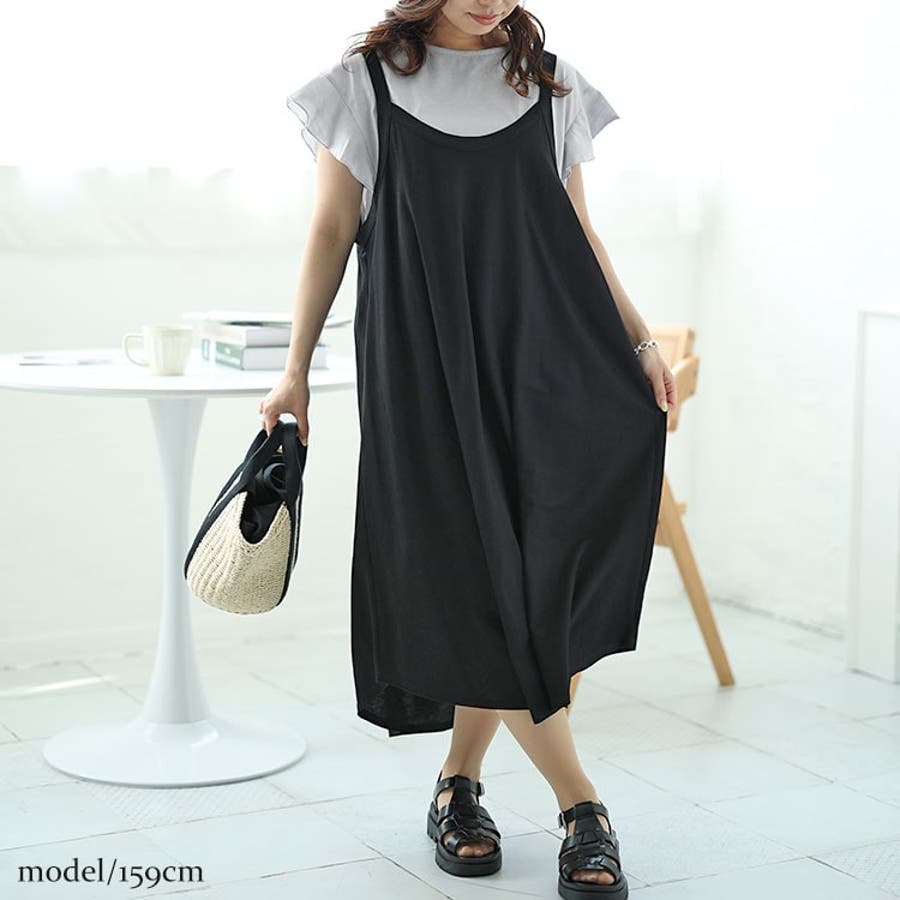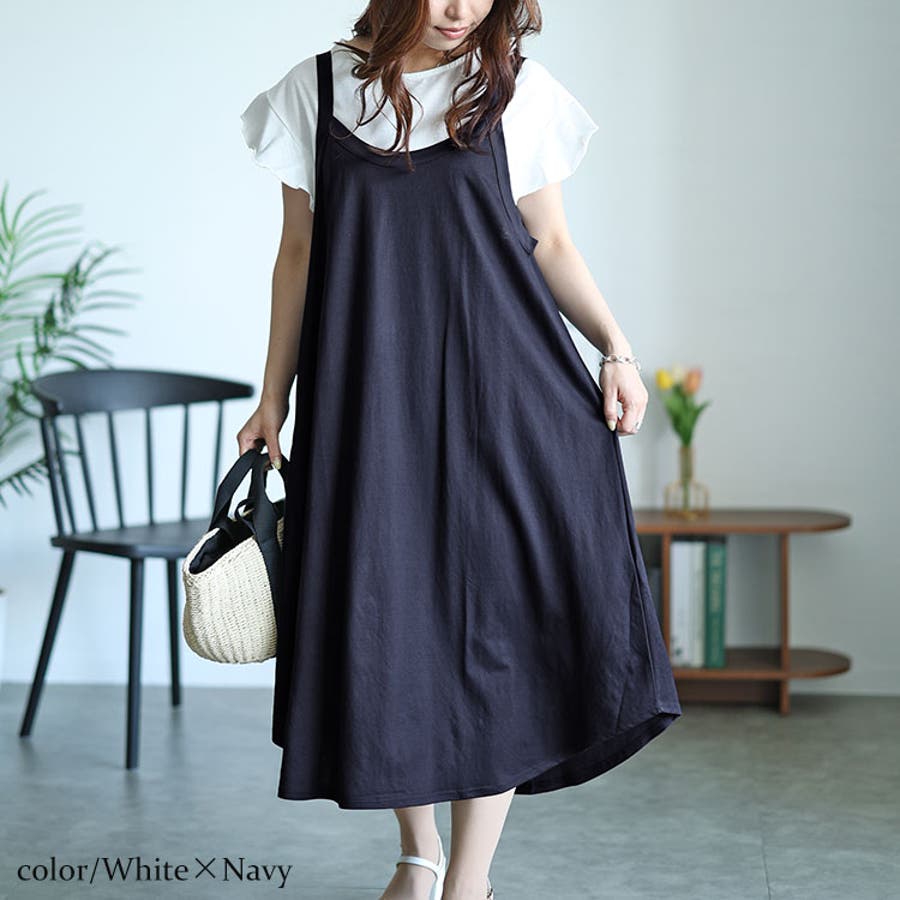 シンプルなTシャツとキャミワンピースのセットアップです。