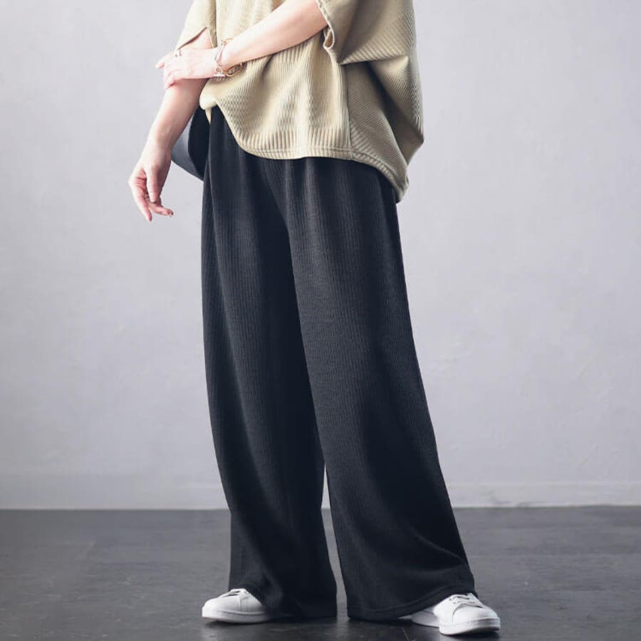 リラクシーな穿き心地で美脚見せするリブワイドパンツの登場です!