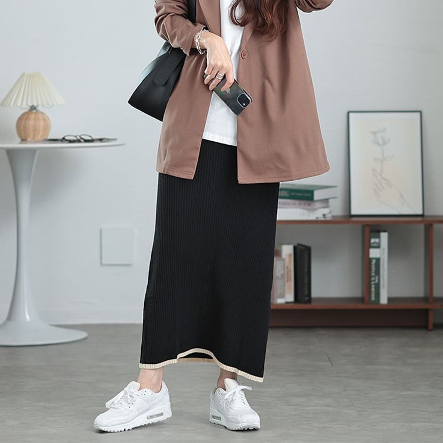 穿くだけでスッキリ見え♪楽ちんなリブニットスカート♪