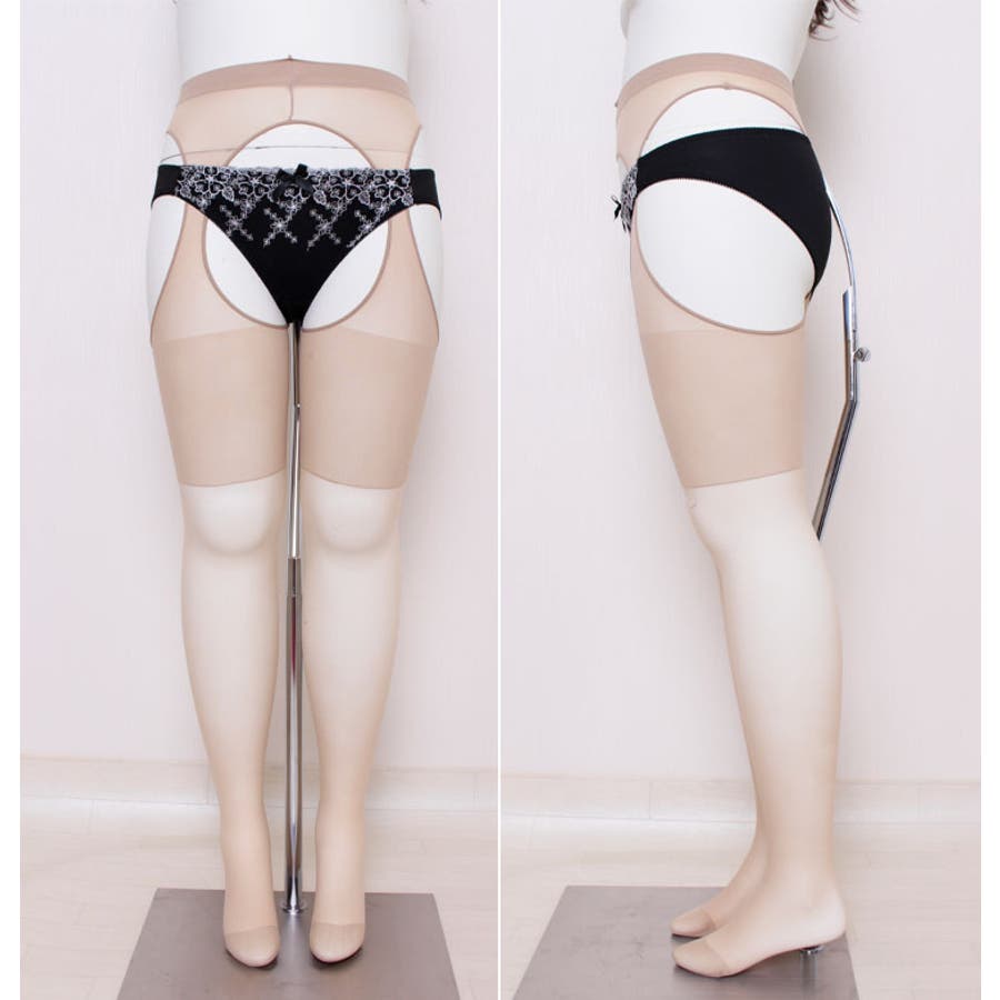 パンティ部がなく、重ねばきによるムレやニオイを軽減できるサスペンダータイプのストッキングです。