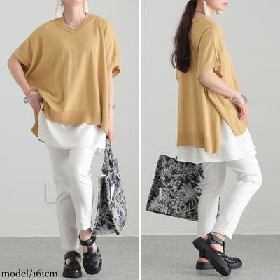 暑い夏でも身体にまとわりつかないので、とても涼しくボトムを選ばない万能なニットです。