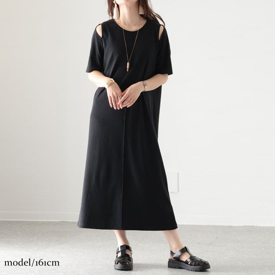 ちらりと肌がのぞく肩あきデザインが、ヘルシーなヌケ感をプラスするワンピースの登場です。