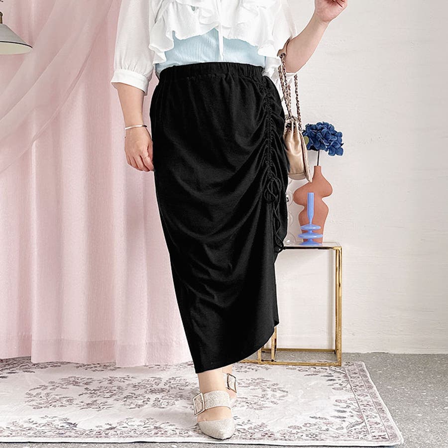 たっぷりとギャザーを寄せたドロストデザインが印象的なスカートの登場です。