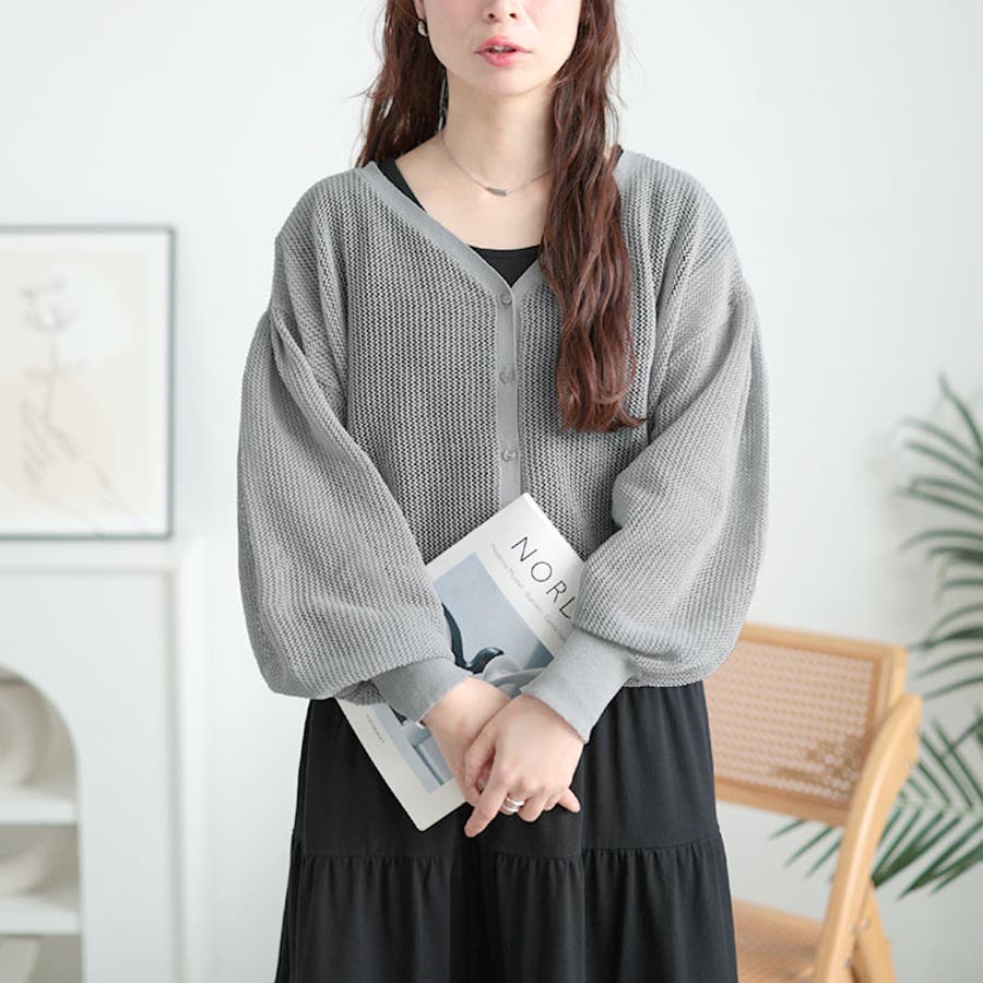 軽やかさと華やかさを兼ね備えた、メッシュ編みのカーディガンです。