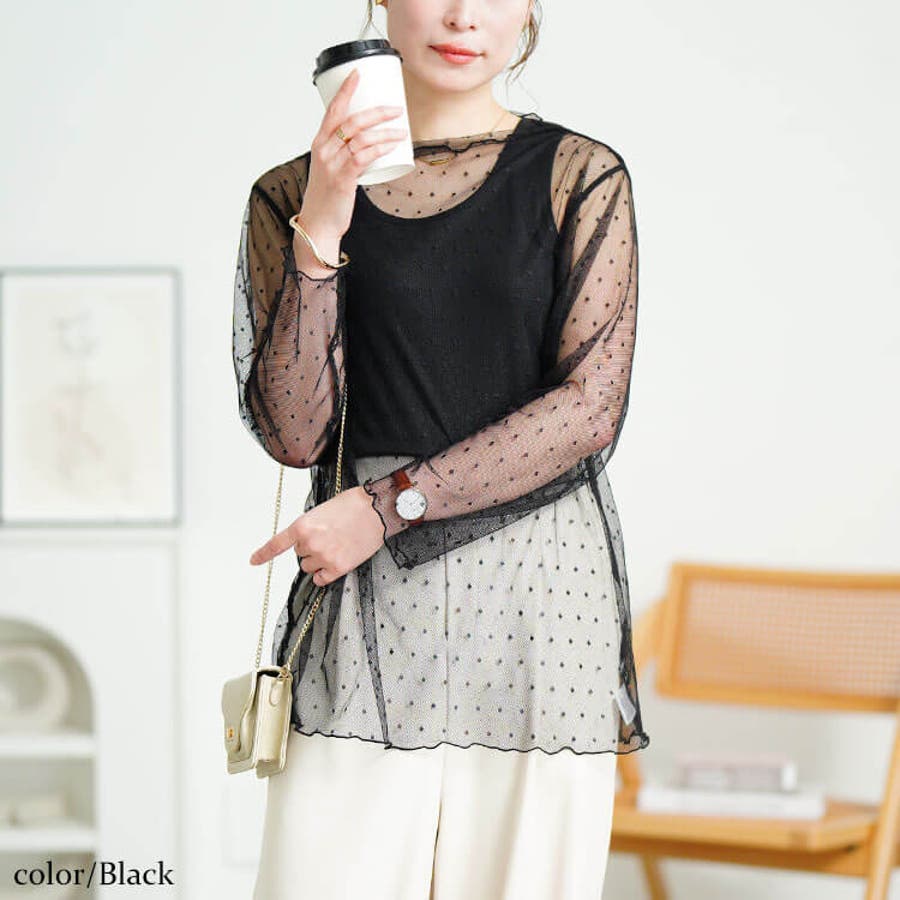 透け感のある質感と派手になりすぎない小さなドット柄がコーデに唯一無二のアクセントをプラスしてくれます♪