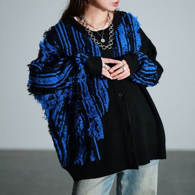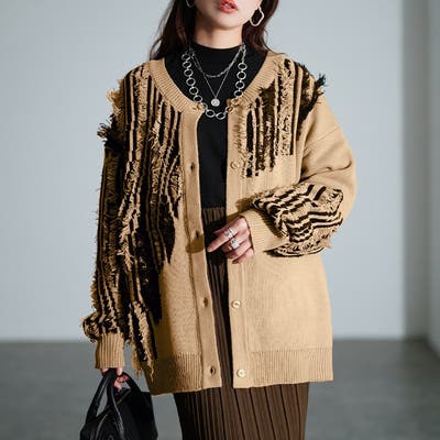 ゆったりとしたサイズ設定と、長めの安心丈で羽織るだけで体型カバーに。斜めに切り替えられたフリンジデザインで、すっきりとした印象とデザイン性を高めます。タイトスカートなどの綺麗めにも、デニムのカジュアルさにも馴染む大人モード感を演出します。