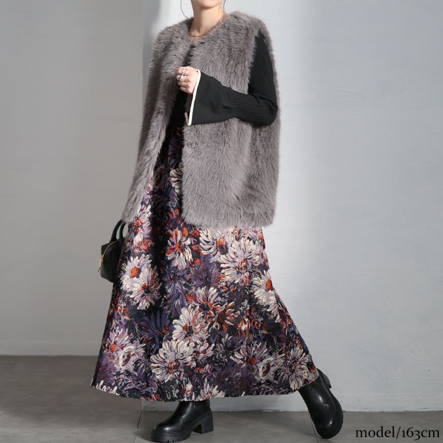 存在感と上品さを両立した、大きな花柄のゴブランスカートです。