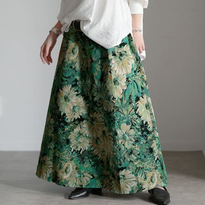 カジュアルにもきれいめにも対応、大人の女性にこそ似合う、華やかで存在感ある主役スカートです。
