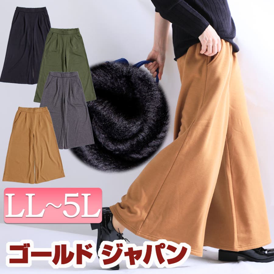 やみつきになるあったか裏起毛、 裏起毛ガウチョパンツ 大きいサイズ