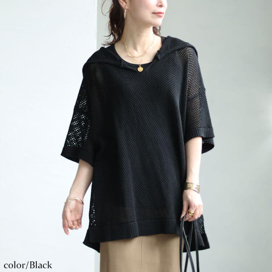 セーラーカラーで後ろ姿もおしゃれ見えするメッシュニットの登場です。