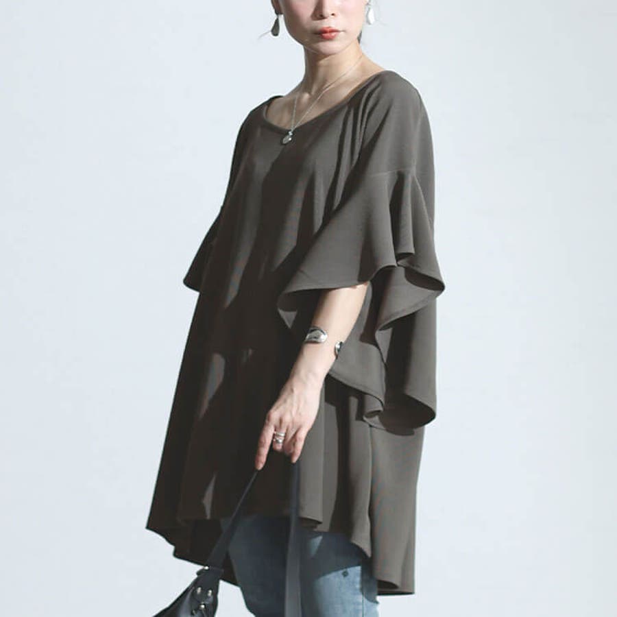 身幅に余裕を持たせたシルエットでリラクジングな着心地ながら女性らしいシルエットに☆