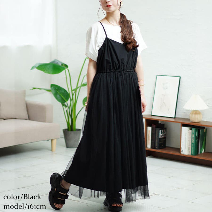 大きいサイズレディース ワンピース リボンチュールキャミワンピース