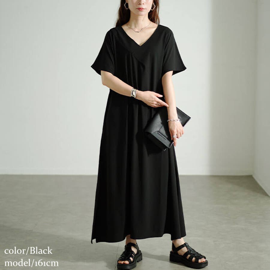 前後がVネックのデザインでデコルテをきれいに魅せてくれます。