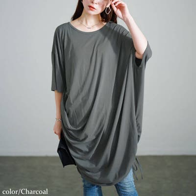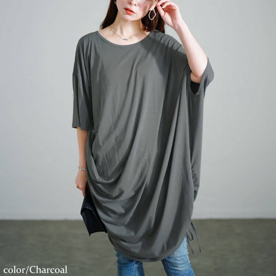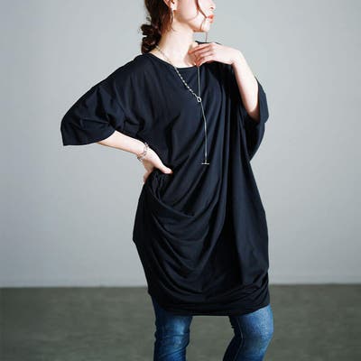 シンプルにモードな雰囲気纏う接触冷感アシンメトリー変形チュニック。