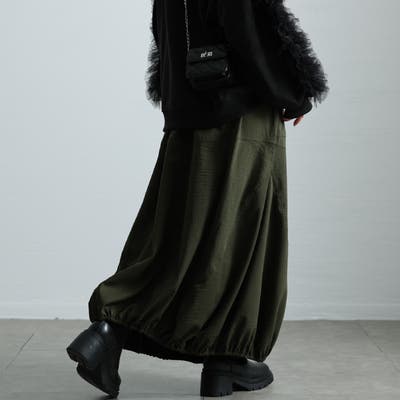 程よくふっくらとした立体感のあるバルーンシルエットで、しっかり下半身を体型カバー。ウエストにもギャザーゴムを採用し、ストレスフリーな穿き心地がやみつきに。一点投入でこなれるスタイリングに仕上がる、大人の垢抜けアイテムです。