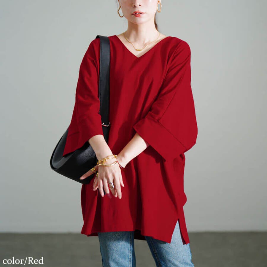 二の腕をカバーする人気のドルマンスリーブでリラクシーな着心地◎