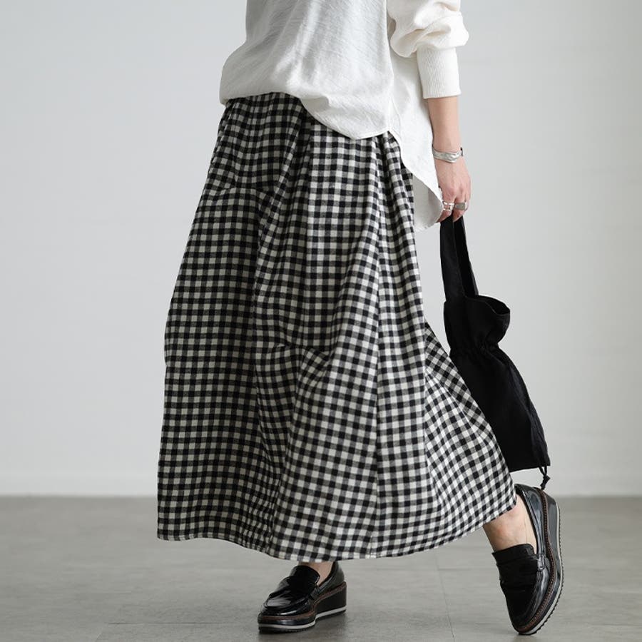ギンガムチェック柄タックコクーンスカート