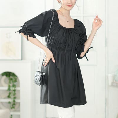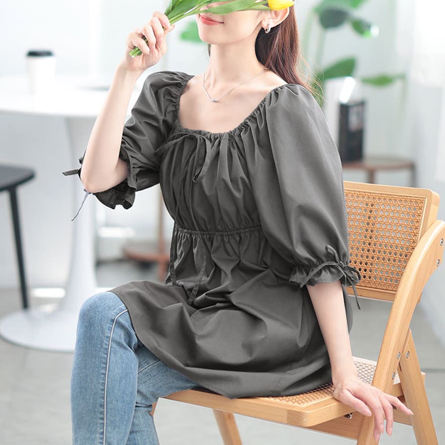 スクエアネックギャザーペプラムチュニック