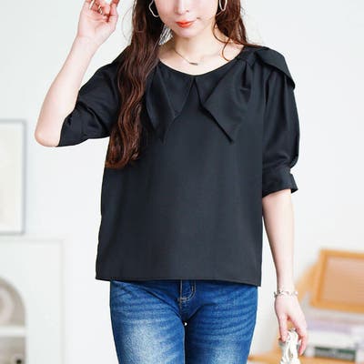 ビッグリボン襟ブラウス