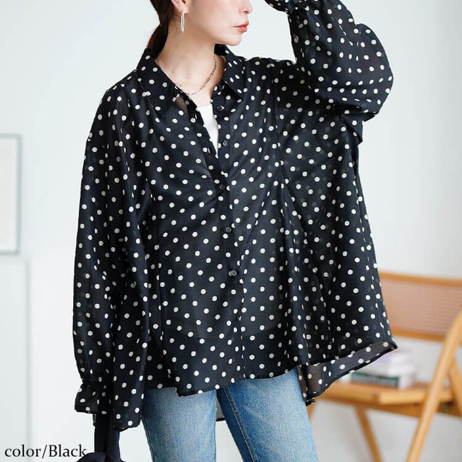 ラフに着て女性らしさ惹き立つ、ドットキャンディスリーブフレアシャツの登場です。