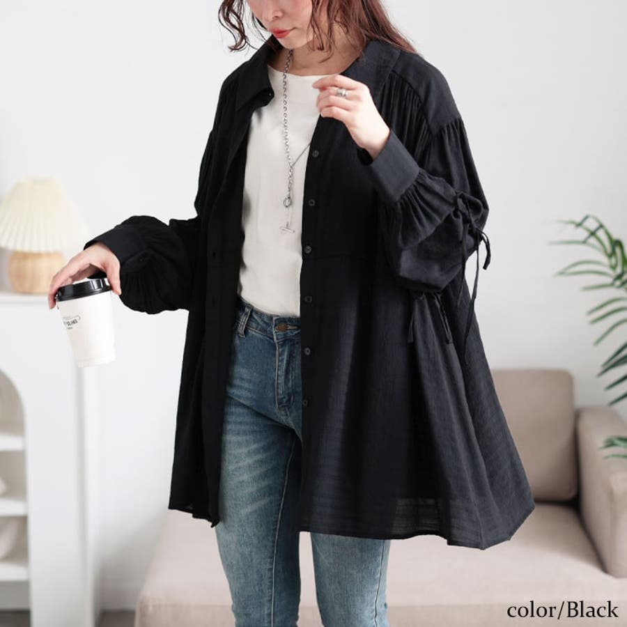 リボンドロストギャザーシャツチュニック