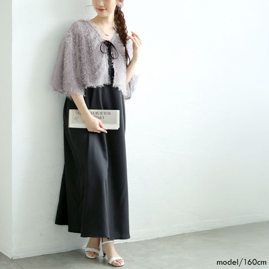 繊細なラメがほんのり煌めくシャギーボレロは、軽やかで華やかな印象をプラス。